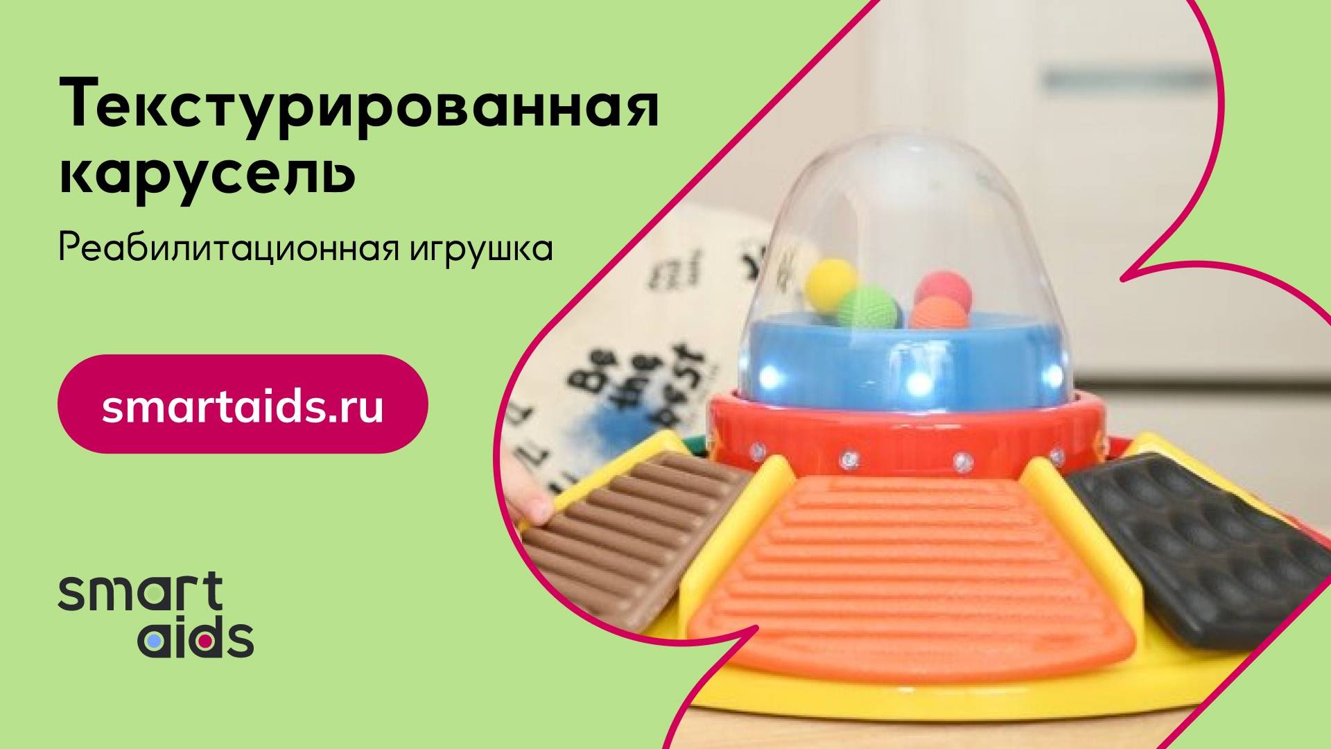 У Алёши ДЦП и Екатерина, как любящая мама, выбирает только лучшие развивающие игрушки для своего сына. Текстурированная карусель - это эффективная реабилитационная игрушка для формирования и совершенствования различных навыков у детей с инвалидностью. Игрушка способствует развитию изучения причинно-следственных связей, зрительного внимания, направленности действий, тактильных ощущений, звуковой ориентации в пространстве, концентрации внимания, мелкой моторики, сенсорного восприятия. При нажатии на кнопки активируются разнообразные эффекты: включается вибрация, мигают яркие и разноцветные лампочки на ярусах, воспроизводятся различные звуковые эффекты и мелодии, шарики под прозрачным куполом приходят в движение. Нажимать на клавиши можно поочерёдно и с разной продолжительностью: на сколько времени будет задержана кнопка, столько и будет продолжаться действие. В этом видео Екатерина и ее сын Алеша расскажут и наглядно покажут игрушку в деле. Приятного просмотра! Узнать подробнее и оформить заказ: https://www.smartaids.ru/catalog/product/igra-teksturirovannaya-karusel/ __________________________________________________ Мы в соцсетях: VK — https://vk.com/dostupnayasreda TG — https://t.me/smartaids OK — https://ok.ru/dostupnayasreda Dzen — https://dzen.ru/smartaids.ru