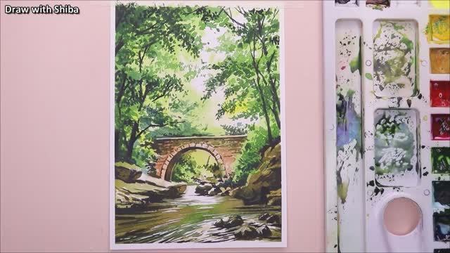 Акварельный рисунок с изображением красивых листьев и моста. Автор постарался сделать рисунок максимально простым. Надеюсь, вам понравится эта акварель. Используемые материалы: 1. Акварельная бумага 300 г/м, 100% хлопок 2. Клейкая лента 3. Большой набор акварельных красок Camel artist 4. Маленький набор акварельных красок Camel artist 5. Набор кистей из натурального волоса BRUSTRO Artists 4 (0, 2, 4, 8) 6. Салфетка для сбора излишков краски 7. Фен для сушки акварельных слоев 8. Вода ;)