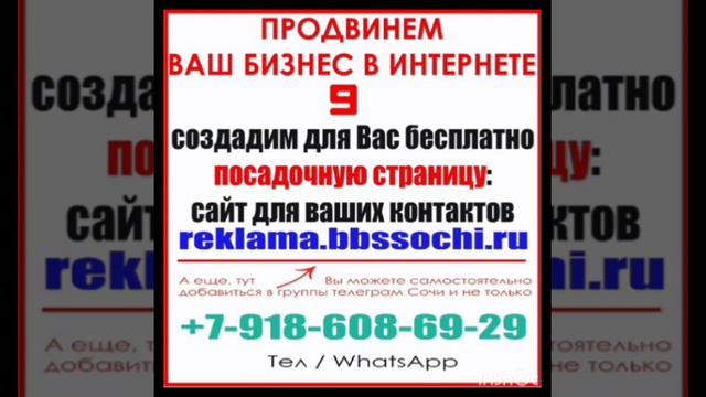 РЕКЛАМА В ИНТЕРНЕТЕ: https://reklama.bbssochi.ru/ ВНИМАНИЕ: Возьмёт на себя раскрутку ваших услуг, фирм, сайтов, товаров, продвижение и рекламу в интернете: ﹥﹥﹥﹥﹥﹥﹥﹥ ТАК ЖЕ ДОБАВИМ ВАС: ﹥﹥﹥﹥ в ВАТСАП группы https://www.groups-sochi.bbssochi.ru/ ﹥﹥﹥﹥ в ТЕЛЕГРАМ группы https://www.groups-sochi.bbssochi.ru/ Рекламное агентство «ББС СОЧИ» https://reklama.bbssochi.ru/ Тел: +79186086929 Ватсап: +7-918-608-69-29 Теллеграм: https://t.me/Andrey220280 БЕСПЛАТНО РЕКОМЕНДУЕМ: 1) САМАЯ БОЛЬШАЯ ГРУППА ОБЪЯВЛЕНИЙ В ТЕЛЕГРАМ СОЧИ https://t.me/bbssochiru 2) КАТАЛОГ РАЗНЫХ ГРУПП ТЕЛЕГРАМ СОЧИ: https://t.me/addlist/W5JiGz0XFNpiZmQy 3) БЕСПЛАТНАЯ ДОСКА ОБЪЯВЛЕНИЙ СОЧИ: https://board.bbssochi.ru ОБРАЩАТЬСЯ: ВАТСАП: +79186086928 ТЕЛЕГРАМ: https://t.me/Andrey220280 #сочи #бизнес #продвижение #реклама #раскрутка #объявления #бесплатныеобъявления #доскаобъявлений #бесплатнаядоскаобъявлений #ббссочи #группытелеграмсочи #группыватсапсочи #работасочинедвижимостьсочи #стройкасочи #ббссочи #bbssochi #лайфхак #полезное