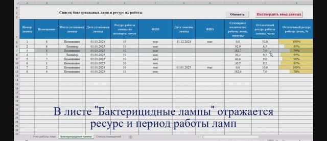 Заполнение журнала по учету работы бактерицидных ламп