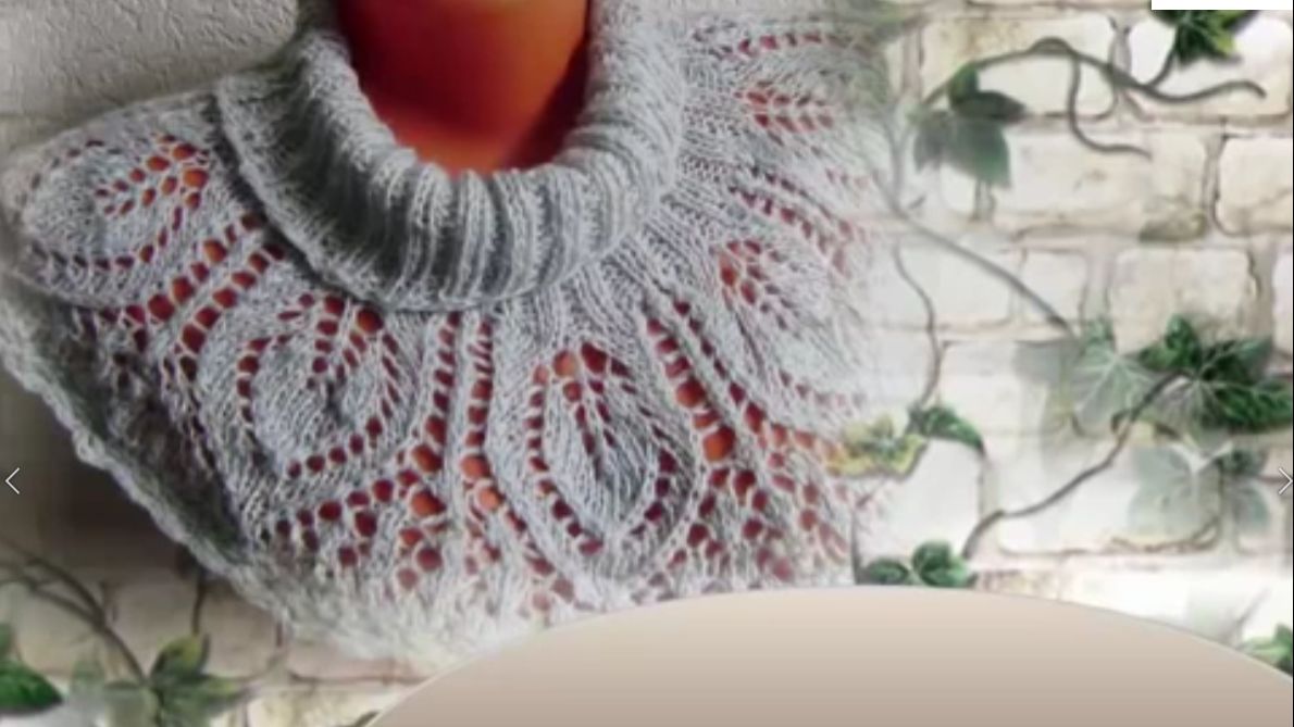 Манишка с ажурными листьями спицами! Мастер-класс