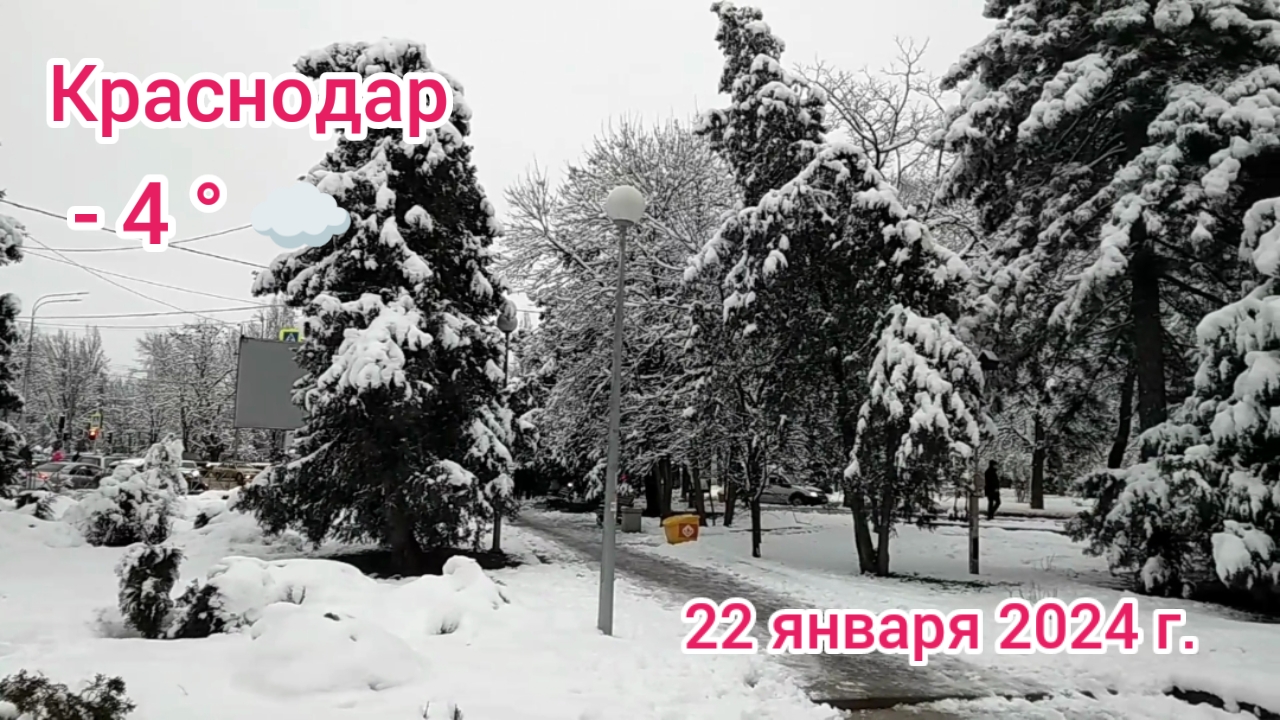 22 января 2024 года, понедельник, с утра мороз - 4 градуса, пошел на я работу на автобусную остановку... 20 января 2024 года (суббота) была прекрасная погода, +15 градусов, пасмурно, но тепло и сухо... 21 января 2024 года (воскресенье) всю ночь и утром шел снег, дул ветер и была метель... температура колебалась от -1 градуса до нуля... к обеду снег закончился... снега выпало около 20 см... 22 января 2024 года (понедельник) мороз - 4 градуса, но без осадков... к обеду вышло солнце и прогрелся воздух до -1 градуса... Вот такая зима в Краснодаре... #россия , #краснодарскийкрай , #краснодар , #погода , #мороз , #снег , #прогулка , #обзор , #центр , #дорога , #районыкраснодара , #районы , #улицыгорода , #маршрут , #наработу , #пешком , #красота , #хорошийдень , #январь , #январь2024 , #зима , #мороз , #снег , #зима2024 , #музыка , #музыкадлядуши