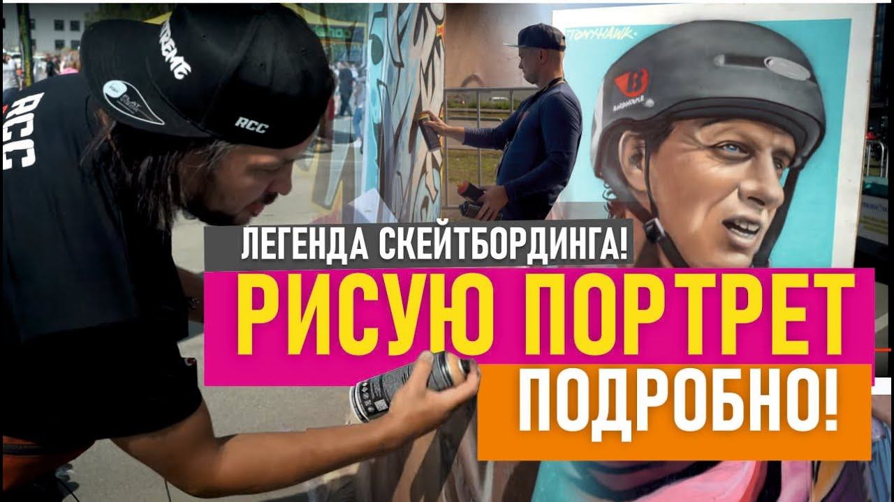 Tony Hawk Graffiti. Рисую граффити-портрет. Скейтпарк RCC.