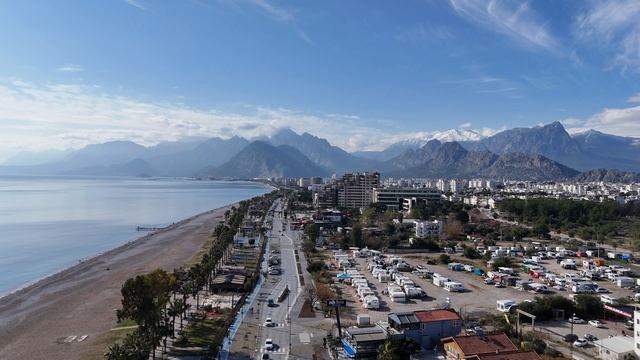 Захватывающий вид с высоты на Анталью, где длинная пляжная линия, спокойное Средиземное море и величественные заснеженные горы создают один из самых красивых пейзажей Турции. Это горизонтальное travel-видео в 4K передаёт уникальное сочетание моря, города и гор в спокойной кинематографичной атмосфере. Видео подойдёт тем, кто любит красивые съёмки с дрона, прибрежные панорамы, пляжные виды и расслабляющий travel-контент.