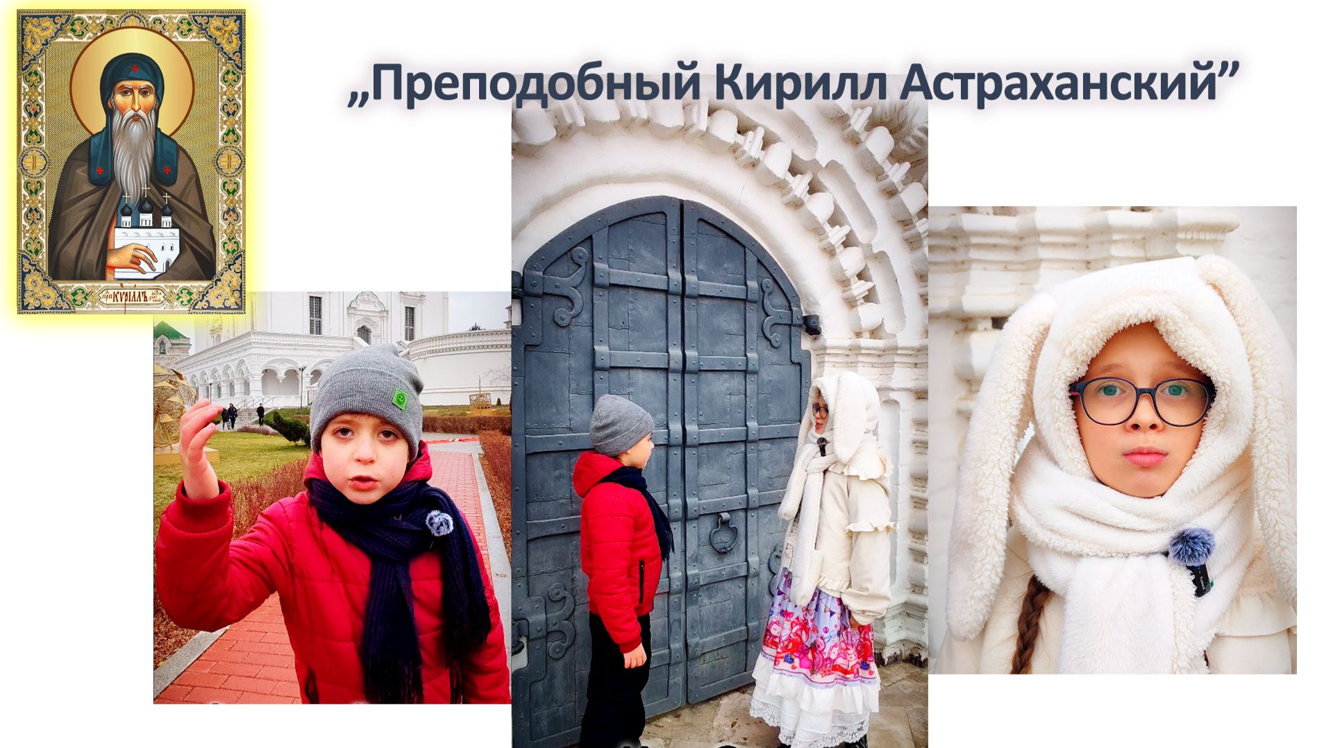 Рассказ о преподобном Кирилле Астраханском от лица детей - Изабеллы Бессмертной и Семёна Степанова. Проект Воскресной Школы Успенского собора, снято для участия в конкурсе видеоблогинга среди учащихся православных школ, в рамках просветительского проекта "Святая Татьяна поможет", номинация "Жизнь по вере".