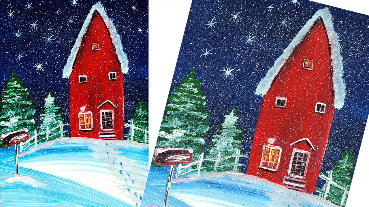 Как нарисовать Новогоднюю открытку. Рисуем Домик Санта Клауса. Правополушарное рисование.