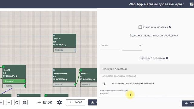 0:00 Вступление 3:11 Создание каталога товаров 8:38 Кнопка на web app каталог в сценарии бота 10:53 Блок обработки заказа 16:23 Вывод списка заказа в бот 18:14 Блок ввода промокода 30:18 Блок сбора адреса доставки 33:52 Создание списка с улицами и стоимостью доставки 40:04 Запрос стоимости доставки у оператора 42:47 Отправка запроса в бот оператора 1:06:15 Вывод ссылки на оплату 1:20:31 Тестирование бота 1:23:04 Прием платежа Создаем магазин по доставке еды + ввод промокодов + расчет доставки Конструктор ботов Квесча https://quescha.com Документация https://docs.quescha.com